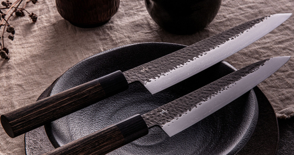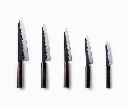 搭配能舒服自在掌握手中的日本傳統栗子型握把,加上刀面的槌目設計,讓食材不易緊黏在刀子上。每一項匠心獨具的特質,都造就了「玄」系列的誕生。