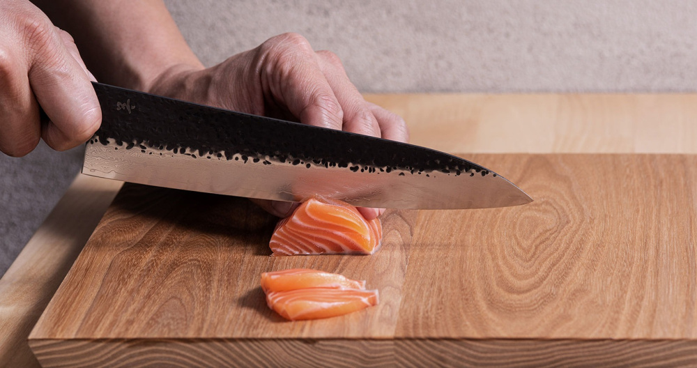 志津匠的《玄》系列的多功能刀,在手感平衡性非常好,屬於實用刀款適合各種食材處理,例如用於切碎食材的使用上。