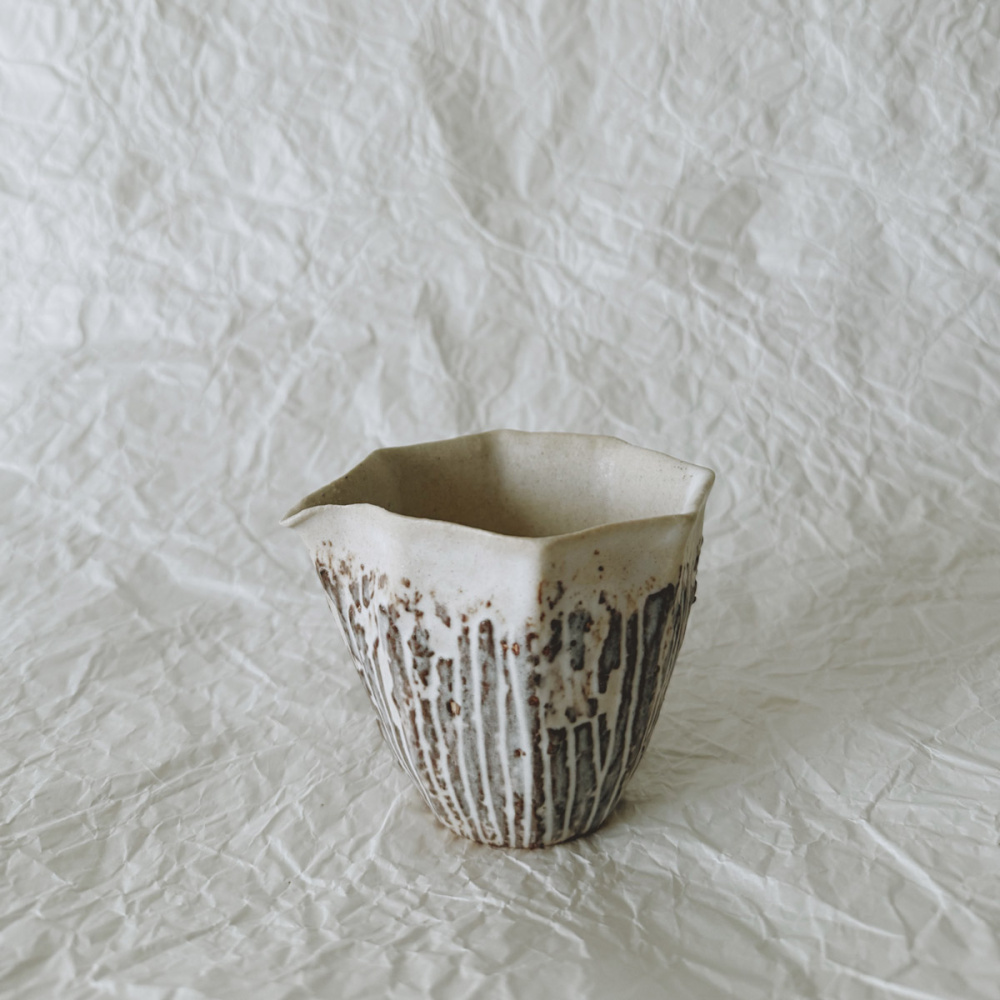 《岩霜》茶海I 創作者:夢十九 尺寸:10 x 8 x 7.5 cm 材質:陶土 生產地:台灣 關於夢十九 高雄長大,台北成熟,師大英文所畢業,輾轉走入陶土創作的領域,就此將我對世間萬事的感知與思索,揉入陶中。我對它們說,一如它們也對我說。 ...