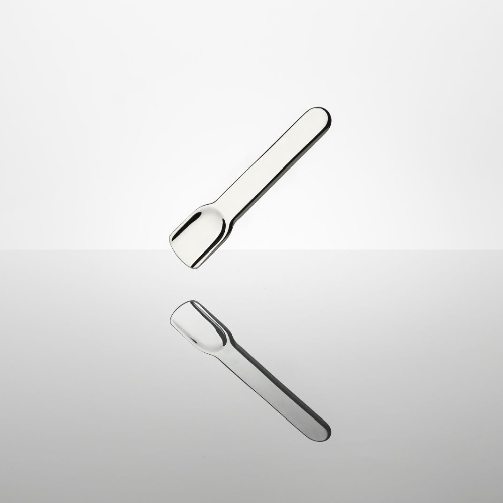 雖然刻意在設計尺寸上做「小」,但它擁有沈穩的重量及手感,看似簡單的設計,經過多次細節調整才完成這隻有如珠寶般精緻,俐落又優雅的冰淇淋匙。這是一隻會讓愛吃冰淇淋的人,會心一笑的設計。