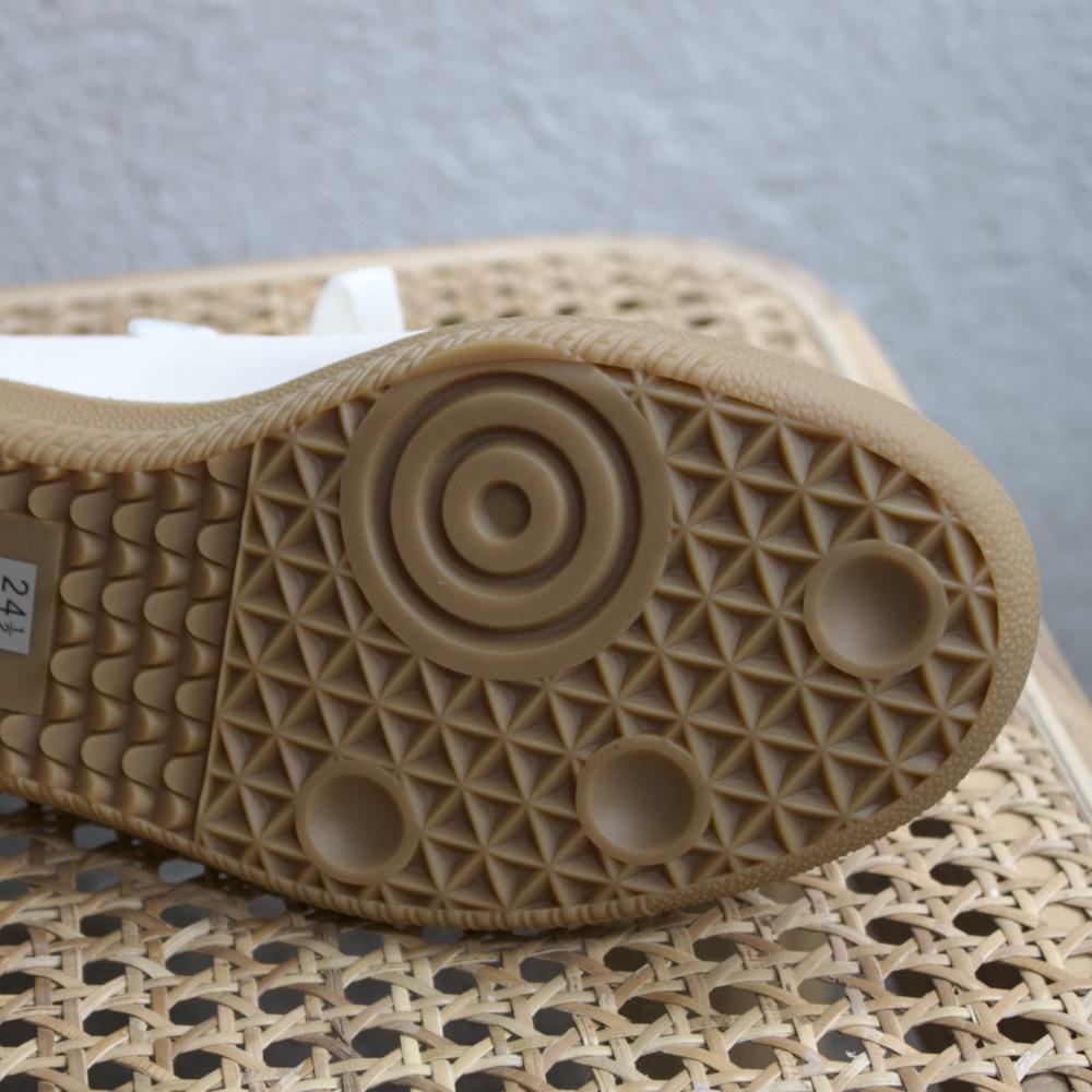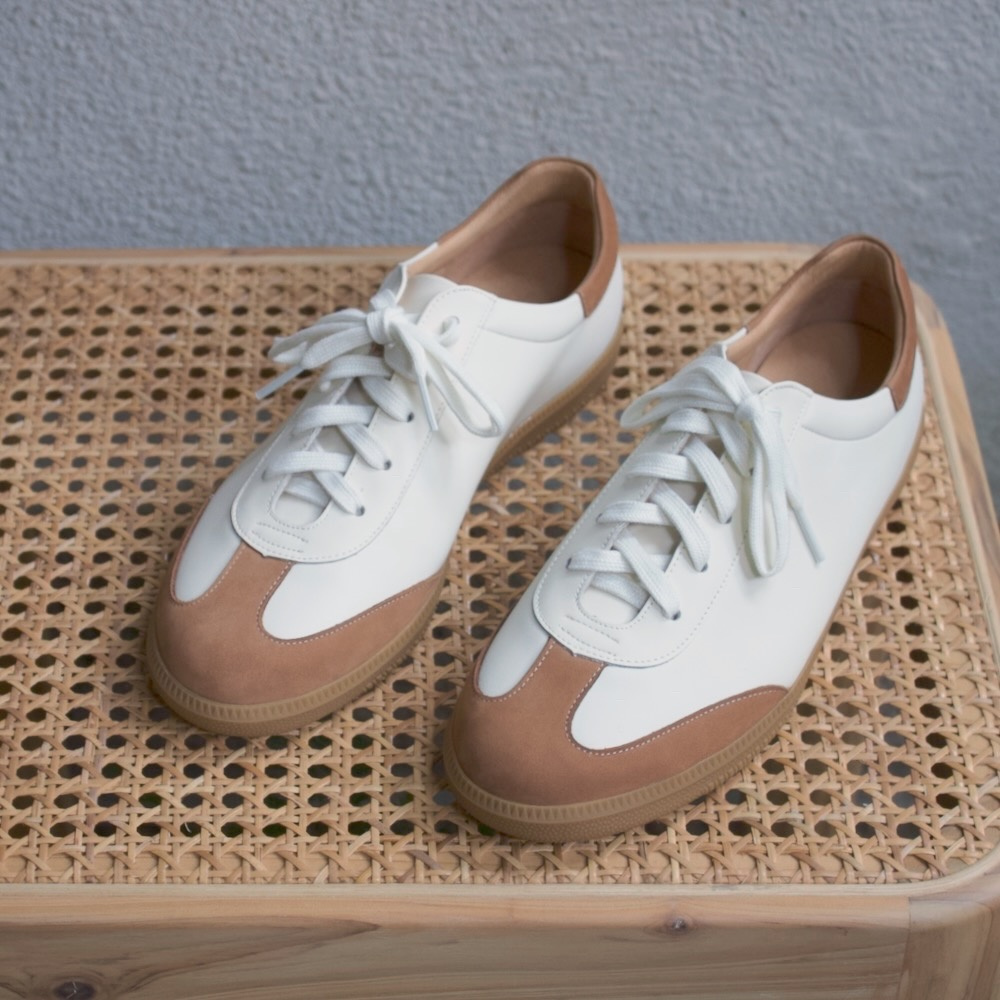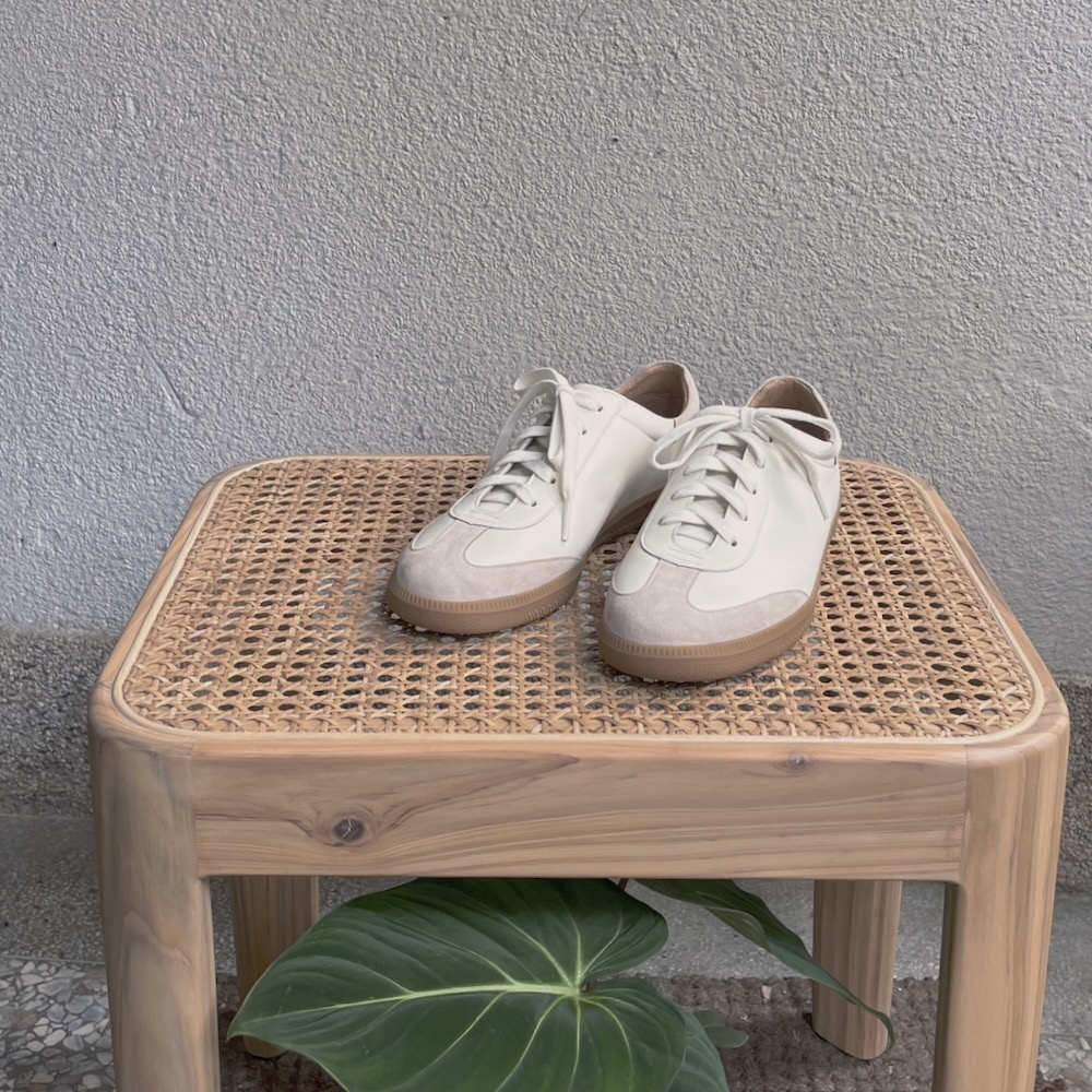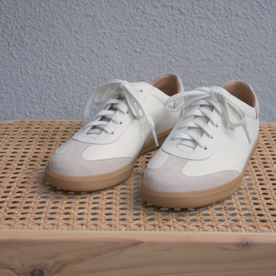 德訓鞋名稱為 German Army Trainer,從名稱中便可以知道是軍隊中訓練用鞋,它是源自二戰期間西德軍隊的室內訓練鞋,講求高機能與耐用度。鞋款設計上T字型鞋頭是它最大的識別特色,以簡約外型與特別選用的面料,良好的橡膠防滑鞋底,在日常穿搭中已是很經典的鞋款。