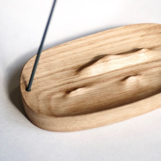 讓置入線香後,由線與面的構成,完成一件溫潤、簡約的作品。