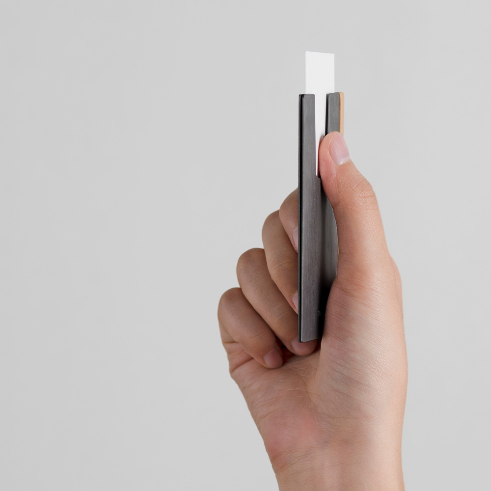 TA+d SLIDE 名片夾   簡約時尚 融合了傳統竹藝與現代工藝,將堅韌的孟宗竹與鋁合金合為一體、極簡線條不加多餘裝飾呈現,金屬拉絲表面處理,更增精品質感。 輕薄隨身 擁有常備所需容量與機能,讓使用者為一天面對的客戶為3~5人的使用者,可放置約5張名片(依紙張厚薄度有所增減),好攜帶的輕薄厚度。 商品規格 材質:台灣孟宗竹 / 鋁合金 保固:無 重量:24g 尺寸:59(L) x 4(W) x 97(H) mm 商品內容物:名片夾_黑色x1 生產地:台灣 溫馨提醒 商品因攝影、螢幕色差等因素,顏色可能略有差異,請以實品為 ...瞭解更多