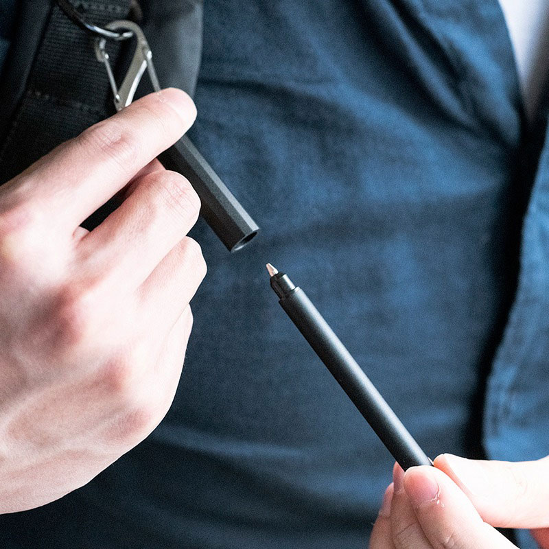 當墨水用盡或想換色時,只需將筆尖朝上,逆時針旋轉筆頭,即可更換筆芯。搭配S型掛勾或吊飾扣環,便可成為EDC日常筆款。