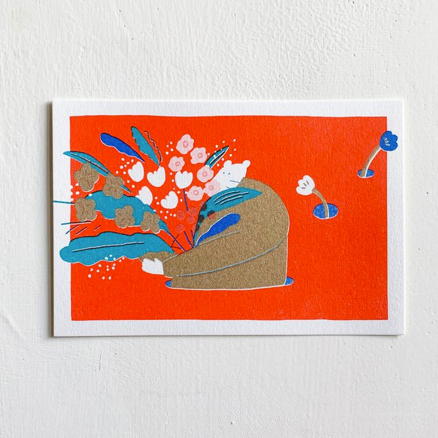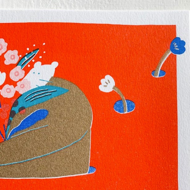 - 使用帶有復古感的孔版印刷,因錯位特性每張都有一些些的不同。(孔版印刷使用無毒大豆油墨,可能會有掉色情形。)