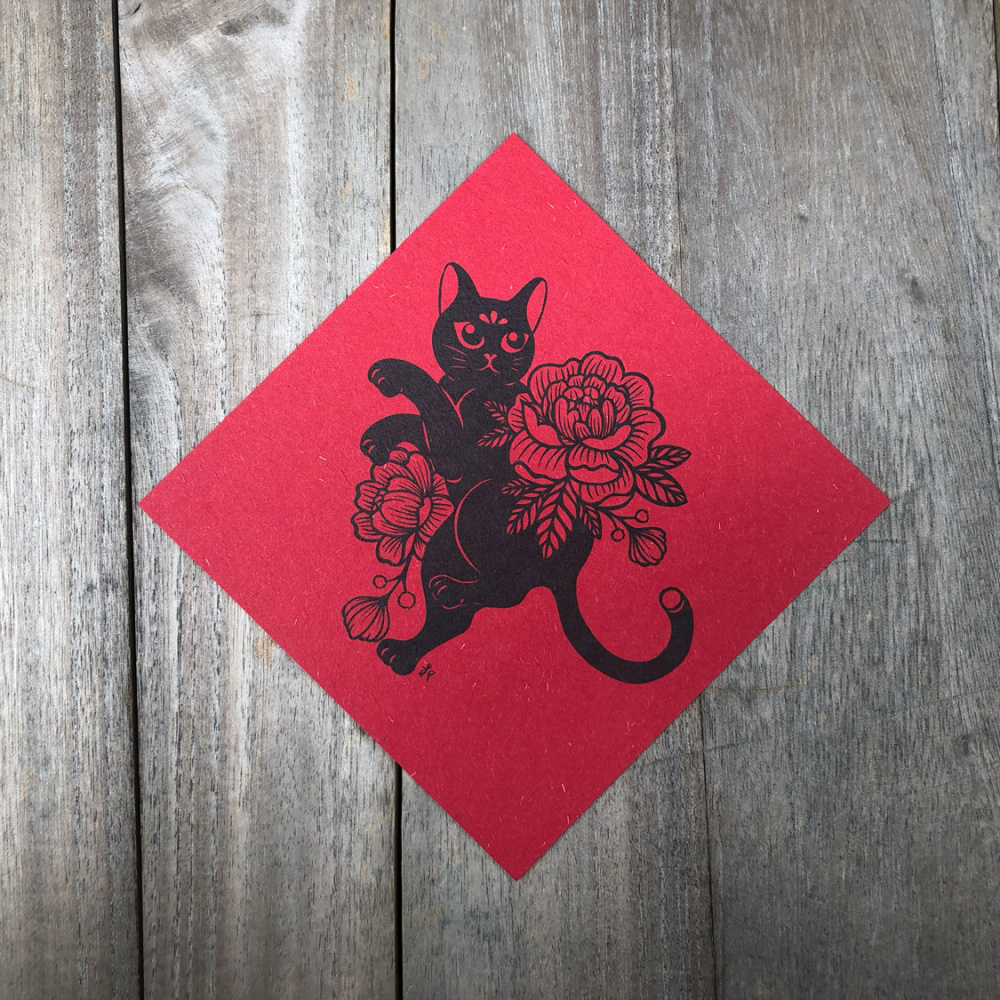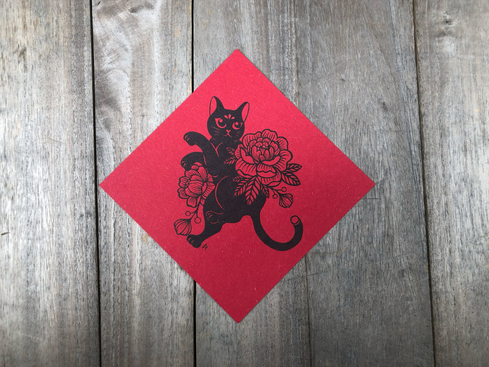 創作者王芔君因喜愛插畫,近期開始以手繪方式進行插畫創作。也嘗試以紙雕方式來呈現作品,透過光影的交錯,讓作品產生另一層細膩度。作品中常見以貓頭鷹、海洋生物及貓兒為主,春聯創作便是以貓兒為主角,讓作品可以不受年節影響。