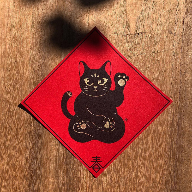 創作者王芔君因喜愛插畫,近期開始以手繪方式進行插畫創作。也嘗試以紙雕方式來呈現作品,透過光影的交錯,讓作品產生另一層細膩度。作品中常見以貓頭鷹、海洋生物及貓兒為主,春聯創作便是以貓兒為主角,讓作品可以不受年節影響。