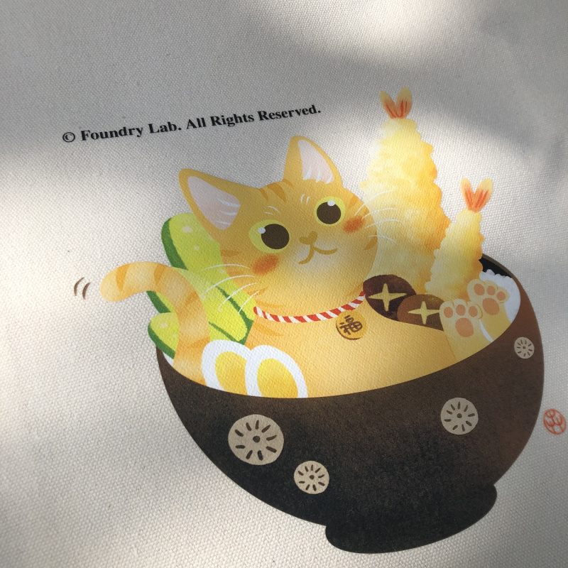 將橘貓與各式配料搭配,就是一碗豐盛的丼飯。因為橘貓的愛吃天性,很適合這樣滿滿豐盛的料理,想必牠的日後的身材...。