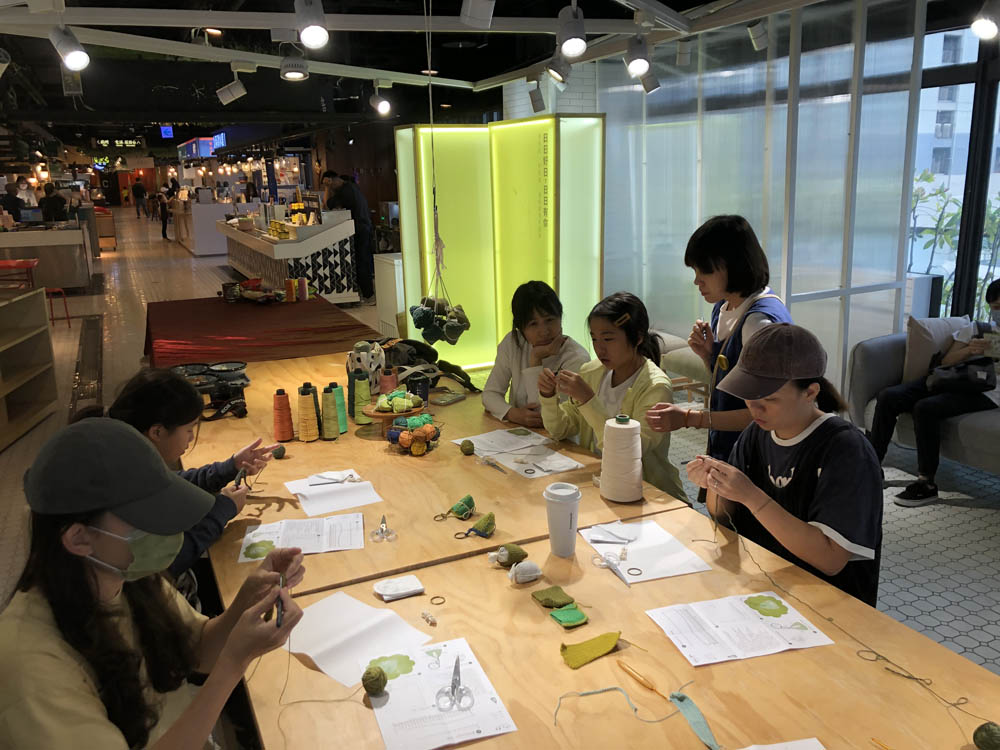 課程為三個小時。萬事起頭難,從零開始練習針法,耐心累積粽葉織面,使用鉤針基礎技法,完成一個編織粽子。